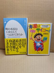 その中で、町の本屋では、外商や棚づくり、取次のおまかせ配本に頼らない独自の仕入れ、書籍、雑誌以外に文房具、CD、ビデオ、DVD、ゲーム、レンタルへの多角化など、工夫をこらしたところは生き残り、そうではないところは、新たに出店した大型書店との競合に負け、数を減らしてきたと述べています。上記の工夫の言った点は「本屋はサイコー! 安藤哲也 新潮OH!文庫 新潮社」を参照ください