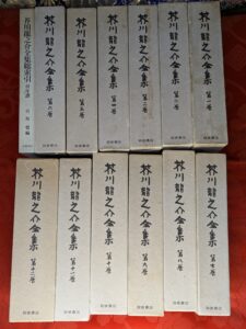 | 芥川龍之介全集(1977年版)全12巻揃+「芥川龍之介全集総索引 付年譜」(宮坂覚編)セット | 7150 | 芥川龍之介著 ; 吉田精一, 中村真一郎, 芥川比呂志編集 | 岩波書店 | 1977-78 |