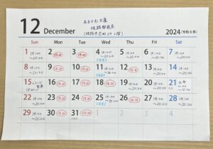 芸備書房姫路支所(あまかわ文庫姫路駅前店)24年12月の予定表