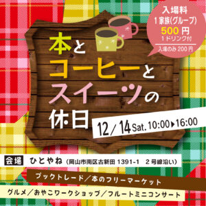 2024.12.14日開催 「本とコーヒーとスイーツの休日」(岡山市南区:ひとやね)に当店も出店します。
