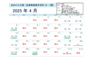 芸備書房姫路支所(あまかわ文庫姫路駅前店)25年4月の予定表