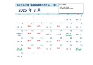 芸備書房姫路支所(あまかわ文庫姫路駅前店)25年8月の予定表